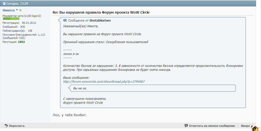 Post Непреемлимое общение с игроками,со стороны модератора Wotlk x100.