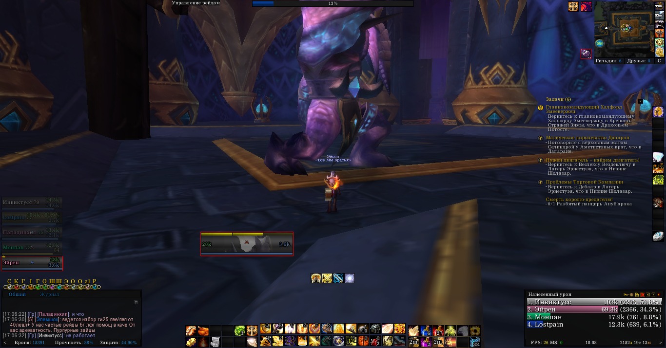 Ласт Босс На фазе Телепортирует Игроков в Посторонний Мир и Вызывает Копии Игроков Каждый Игрок Должен Убить Сои Копии что бы потом Босс Вышел из Фазы. А копий нету(((
