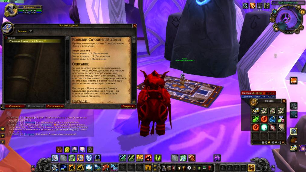 Здравствуйте дорогая администрация проекта Wowcircle, в процессе выполнения квеста на тотэм огня в игре был дисконнект, в следствии чего ,как я считаю, после финального квеста оный в рюкзаке не появился, квест заного соответственно, я взять не могу. Персонаж на х300 под ником Дофламинго