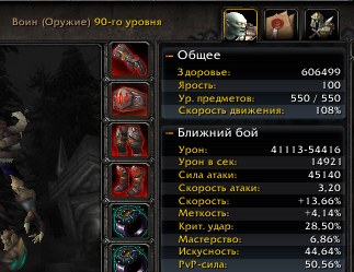 Вообще то видно какое оружие стоит. Максимальная экипировка 550, одета 550 (550/550)
