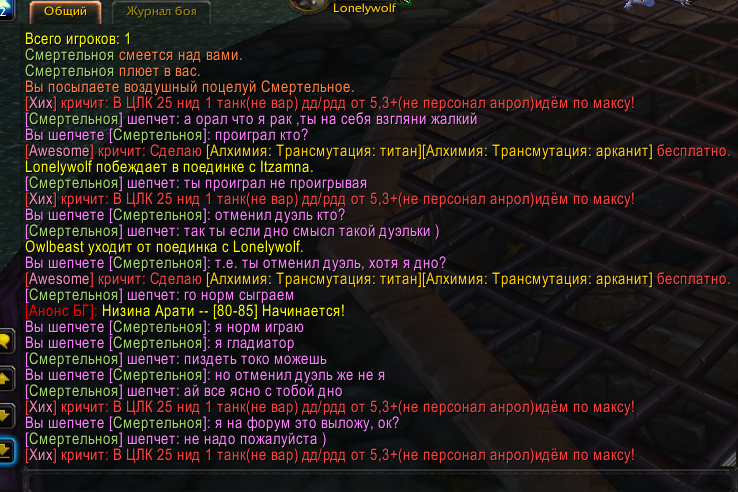 Я использую геодату и на арене и в дуэли, но ханта это не устроило, т.к. я умудрялся 3 раза покушать, 2 раза убить его пета и побегать за ящиками. В итоге, он отменяет дуэль, такие вот дела. А так, у меня всё хорошо, хочу передать привет своему другу, который сейчас где-то бухает без меня.