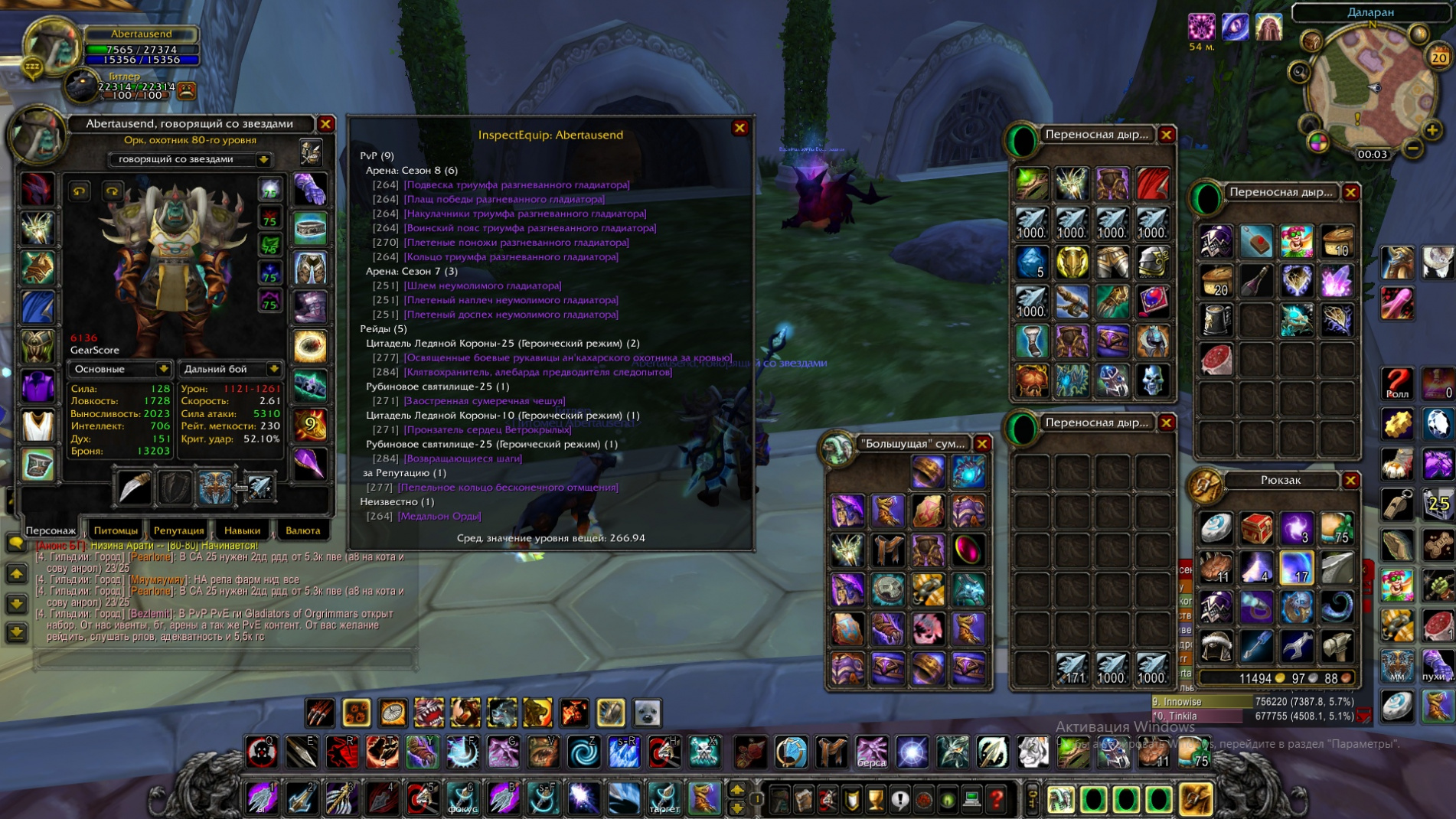 1) Abertausend, охотник, орда, мм https://cp.wowcircle.net/char/6/7983958