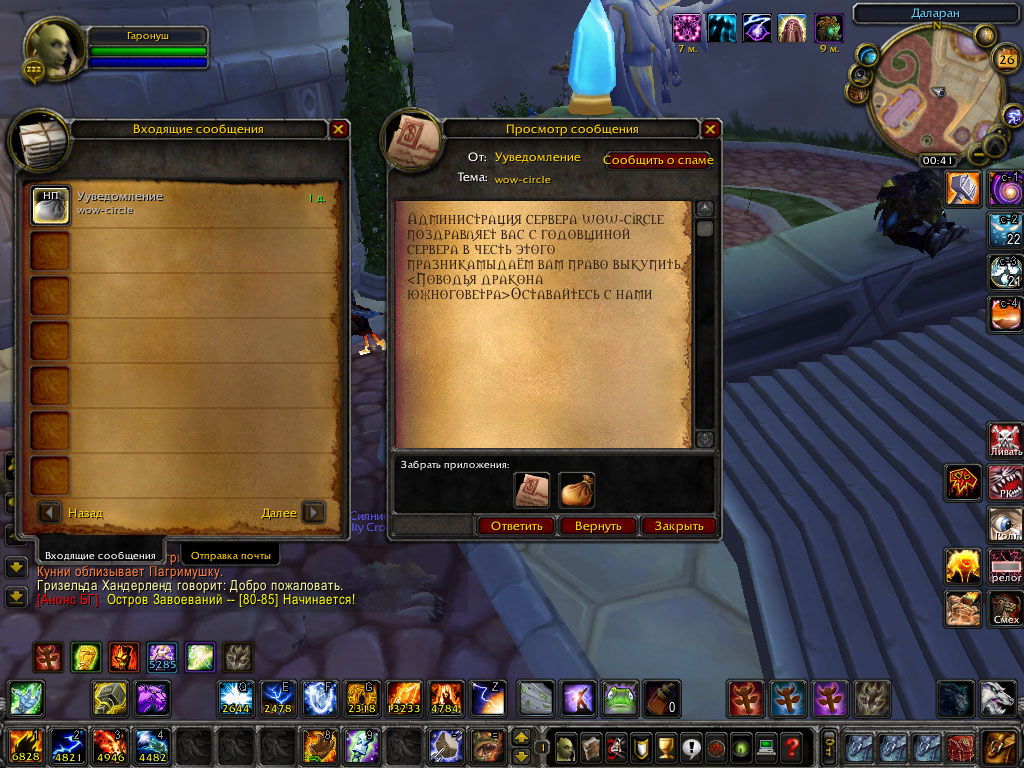 как то видел в игре обьявление что за посылке по почте якобы от админов наложенным платежем тоже банятся. так вот от персонажа с ником Ууведомление пришло по почте сумка с наложенным платежем якобы с поздравлением от администрации с годовщиной.