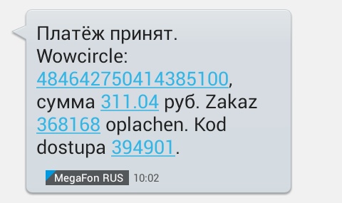 3. 925-372-98-40 \ Платёж принят. Wowcircle: 484642750414385100, сумма 311.04 руб. Zakaz 368168 oplachen. Kod dostupa 394901