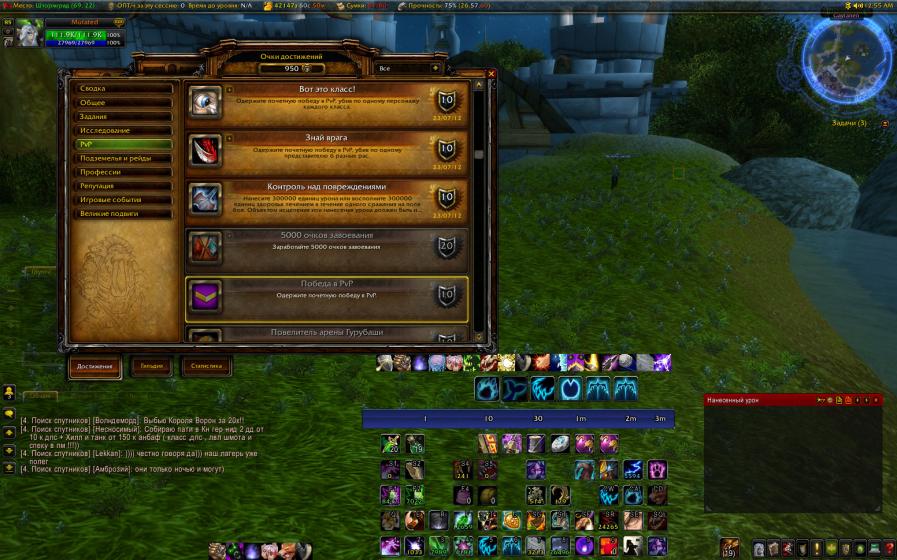 2. Мне не дают ачивку победа в пвп при убистве игрока противоположной фракции.На скрине видно ,что ачивки нет,но при этом есть победы в пвп ,которые видно по ачивкам выше.Сама ачивка робит(но не у меня) второй скрин видно что о убивал игроков противоположной фракции.На последнем видно что люди получали ачивку.Чар был создан давно.