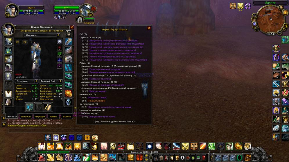 1. Шуйка , паладин, орда эльфийка крови, ретро спек, 6.6к гс в PvP 6.4 PvE. (2300 бонусов)