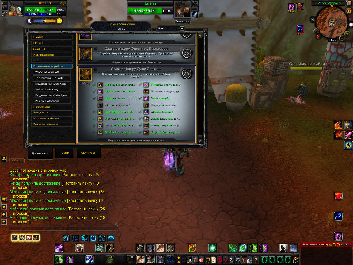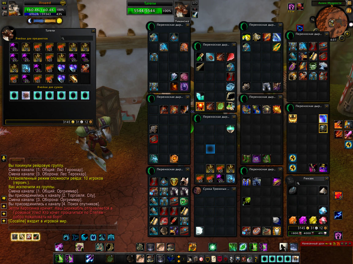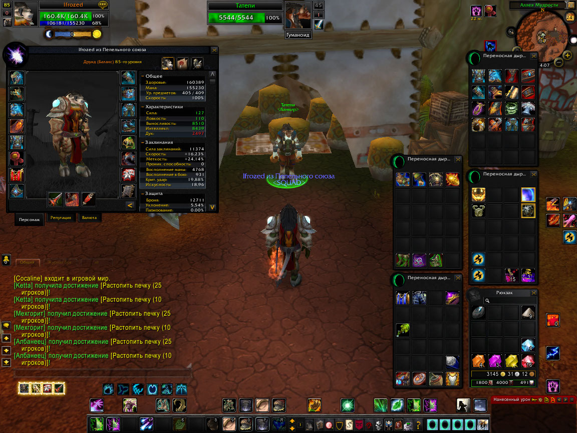 5) 3 спека. Бис танк, Бис хил, пред бис сова (хм ратрака не хватает), Шмот на ферала (Не хватает Фиала) . Хм хитрости. Есть Кирилл хм\об. Много званий. В сете хила и совы - фулл эпик сокеты.