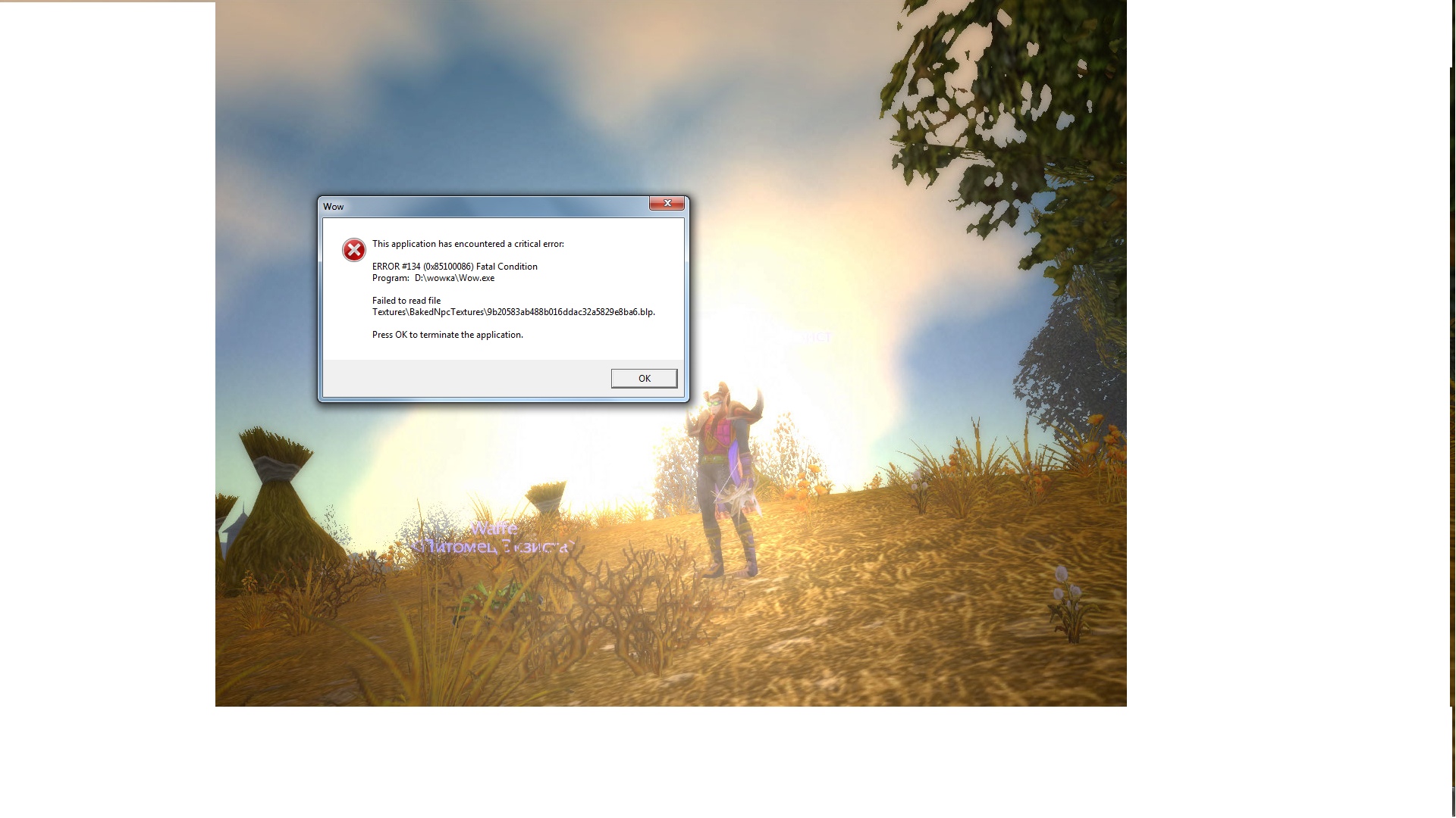 7 - Не могу играть за данного персонажа , вылетает ошибка. Такое уже со мной было только гдет-то год-два назад.