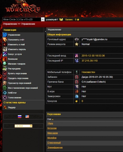 Добрый день!Хотелось бы узнать причину блокировки учетной записи.Вложение 305941.30.12.2015 заходил в игру последний раз,прошелся по ппг и вышел из игры.