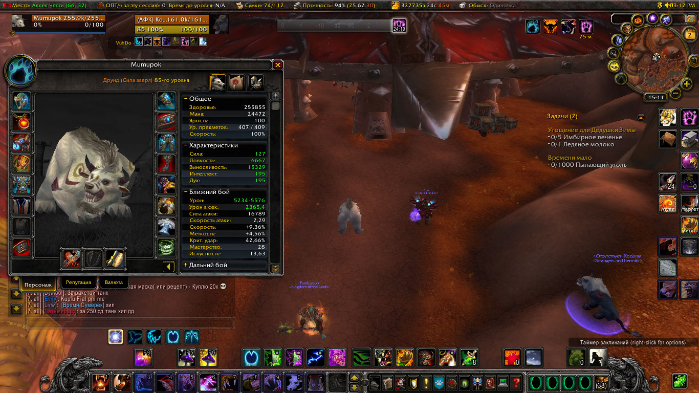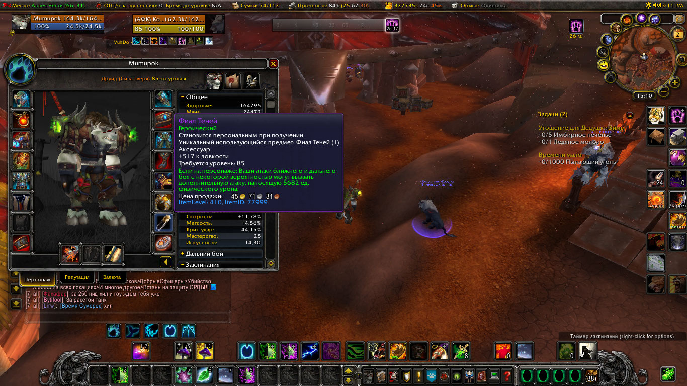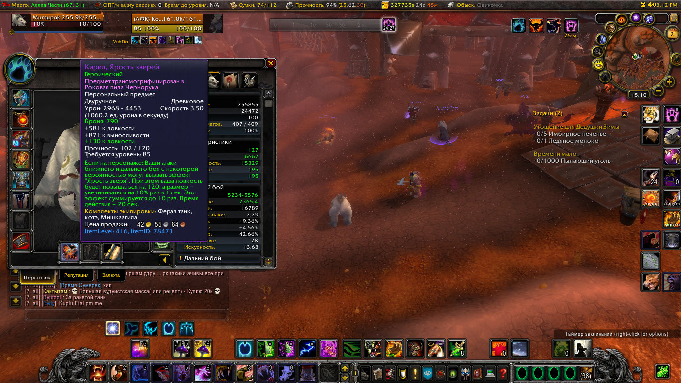 Бис PvE сова, рдру, кот, мишка. с всевозможным абузом. Шмот на кота и мишку разный, с разными сокетами (стамина и агила) Лега доначена, ибо запорот кв на 2 фазе.