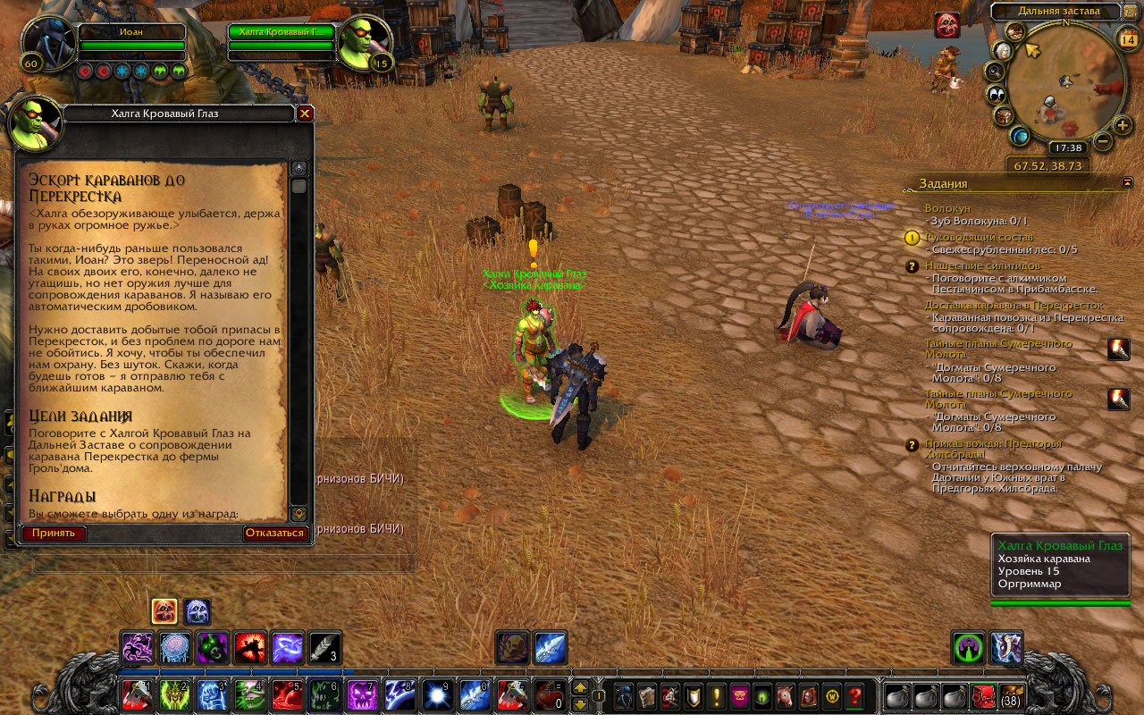 2. Задание должна довать Халга Кровавый Глаз <Хозяйка каравана> (http://ru.wowhead.com/npc=34258), а окончание у Кранал Фисс (http://ru.wowhead.com/npc=5907) нет возможности говорить с Халга Кровавый Глаз, караван отсутствует.
