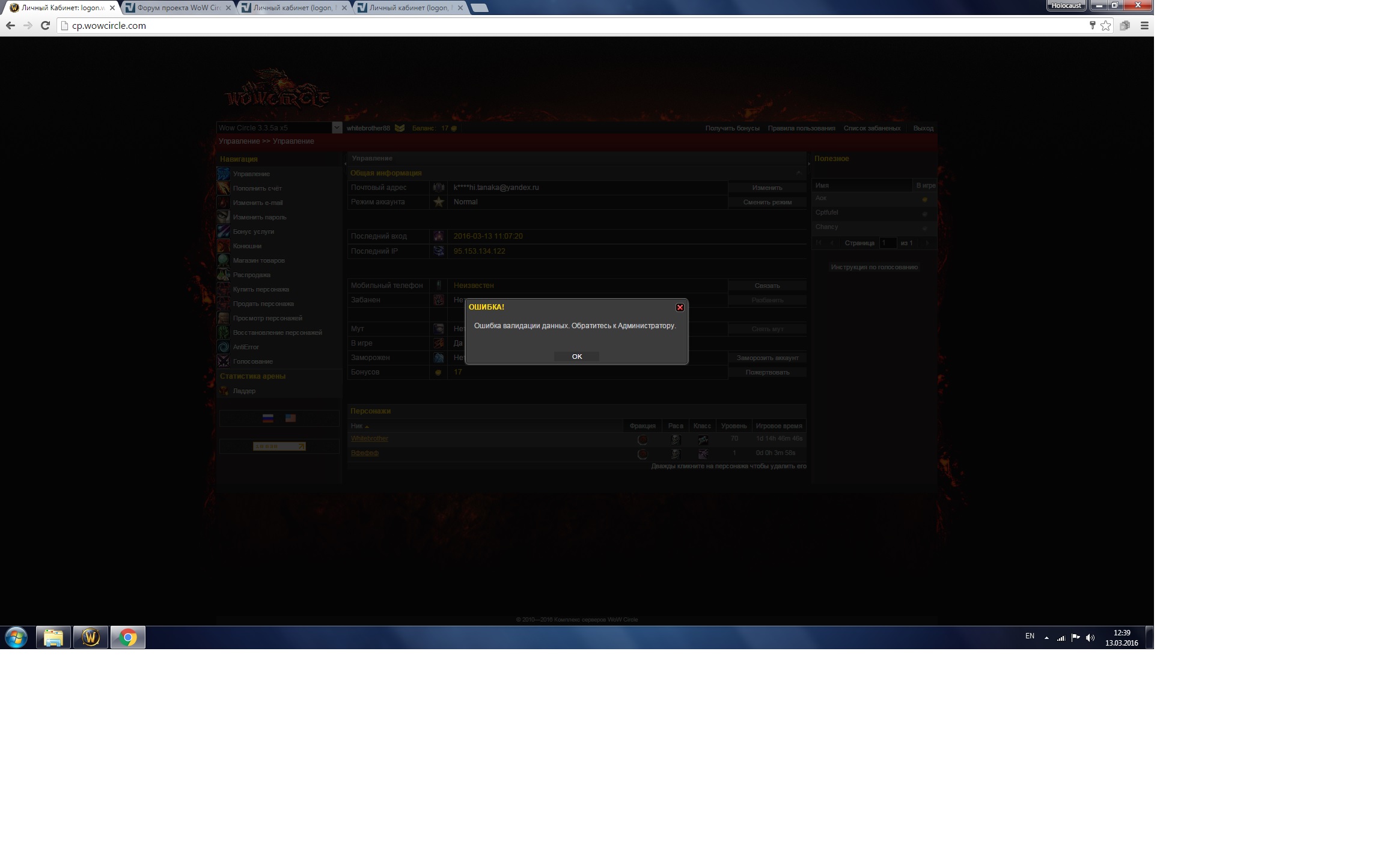 Данные: Logon Wow Circle 3.3.5a x5, логин whitebrother88