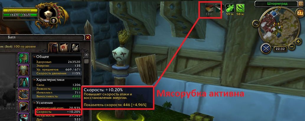 Мясорубка не должна давать прибавку к "скорости", только скорость атаки.