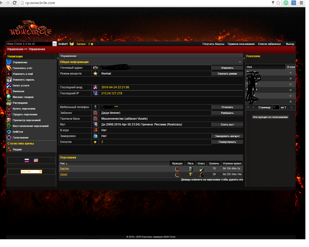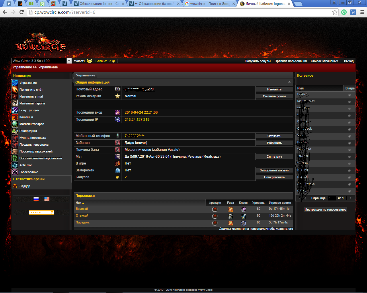 3.Начнем с того что у меня пропал хонор и лед , а на следующий день мне дали мут чата на семь дней ,и после этого у меня не заходил на мой акк в игре ,а зайдя на акк в личном кабинете увидел что у меня бан после мута .