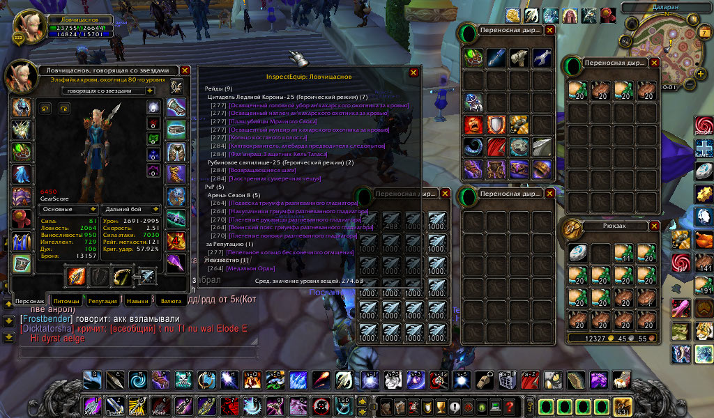 1. Ловчицаснов, орда, эльфийка крови, BiS PvE + PvE A8