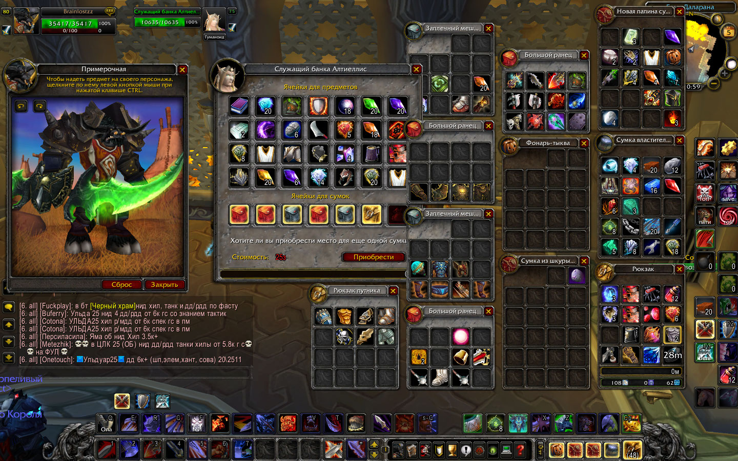1.Орда, тауренчик, основной спек - армс (пвп) а8/а7/а6 ник - Brainlostzz