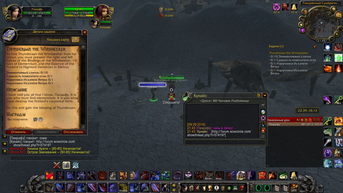 7) Скриншот 13.06.2016г, на котором видно, что в последней сумке у меня есть двое наручей и 10 слитков... НЕ хватало только сущности Раги... Сегодня его убил и получил НИЧЕГО! WoWScrnShot_061316_220322.jpg 26.05.2016г купил у парня 10 слитков за 55дса, отметил это скрином WoWScrnShot_052616_182805.jpg Вот еще один скрин, сегодня наконец смог первый раз убить Рагу и хотел сдать квест, но из-за бага не чего не вышло(((((((WoWScrnShot_062616_233227.jpg