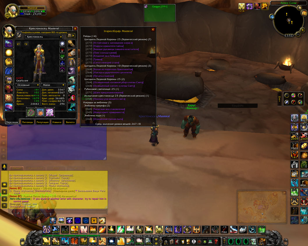 5.Хорошый Пал есть выбор хм до биса нехватает 4 шмотки!!!Ппал(пвп) с зовом хм и щитом с ланы хм!!Много Шмота с Трансмогрифом !Портняга/инжа(есть джывс и почта)