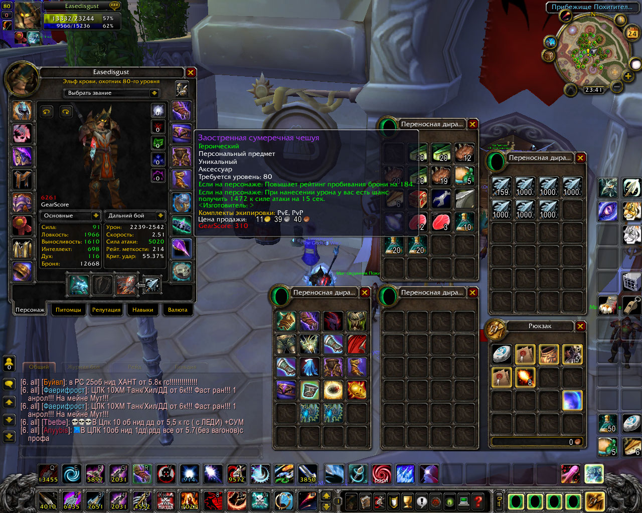 1. Easedisgust, орда, эльф крови, пвп 6109, пве 6261.