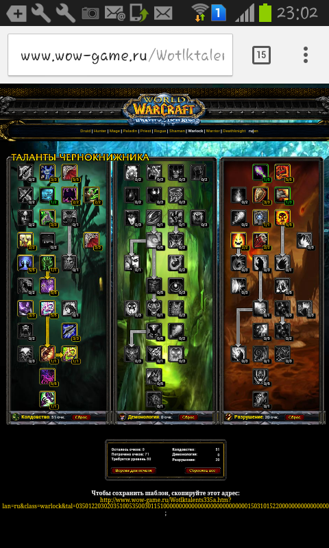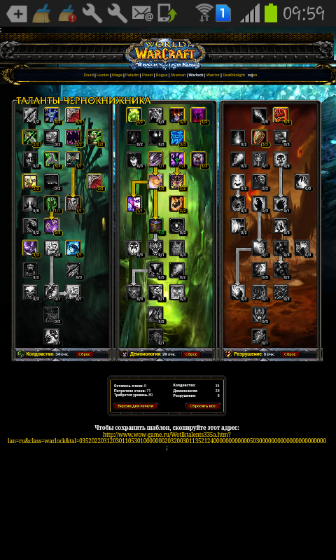 Ну вот еще последний скриншот если пробивают не сильно то можно с мастера демонолога забрать 3 таланта и вбить в вой ужаса
