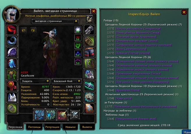 1.Bailen найтэльф\альянс PvE Комбат(6259гс) Мутик(6302гс) PvP ШД(6030гс) Мутик(5982гс) Всё по сути видно на скринах!!