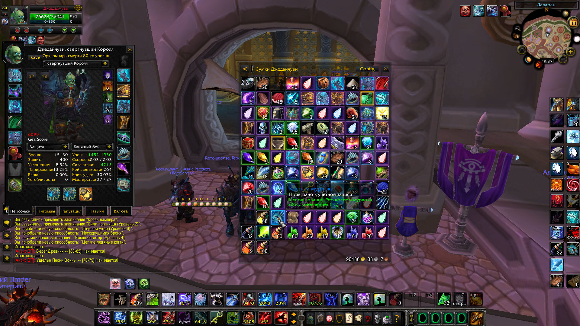 5. фдк 6.1 фул 25 об нон сет собран, собраны все капы, оружие зов хауса (лич 25гер), 2 топ трини чешка 25гер и воля 25гер, бдк 6к гс камни чарки все есть, профы инжа юва, есть призрачный тигр и еще пару прикольных маунтов, приличное кол-во регов сумках на юву, зелье быстроты 200+, зелье дикой магии настои на спд и ап, костюм мурлока и огра, все что в сумках на скринах оставляю на персе, кто купит перса на этого же персонажа могу отдать еще 100к голды (если нид покупатель отпиши дк на х5 орда ник Lilpeep) за минималку норм , любителям пве уже не нид будет тратиться (разве что на аппокалы) остальное легко будет выбить ,для пвп есть грань + триня выбор гер, танк одет для танкования цлк 25 об,гер.