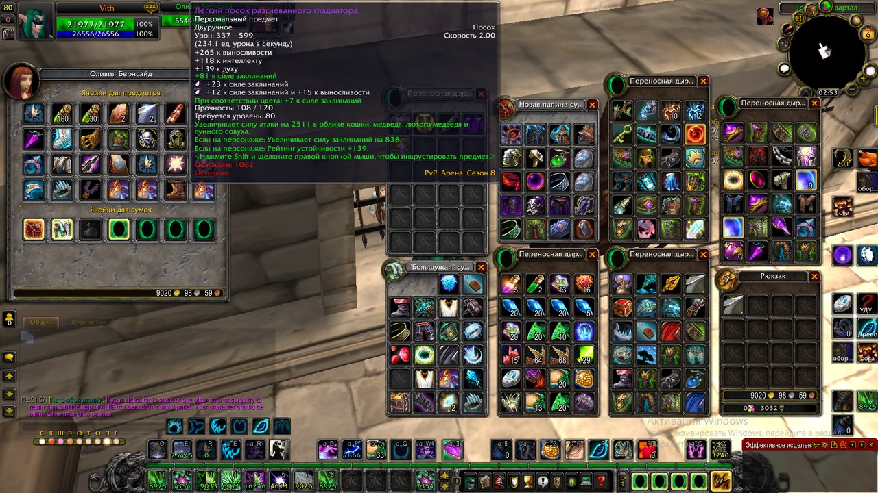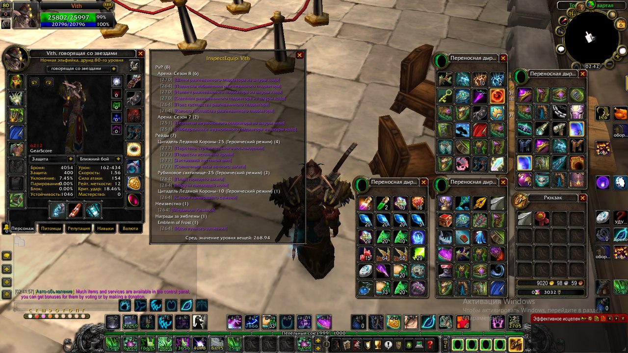 Все видно на скринах. Пару колец не мог одет из-за ювы) Куча маунтов и транса.