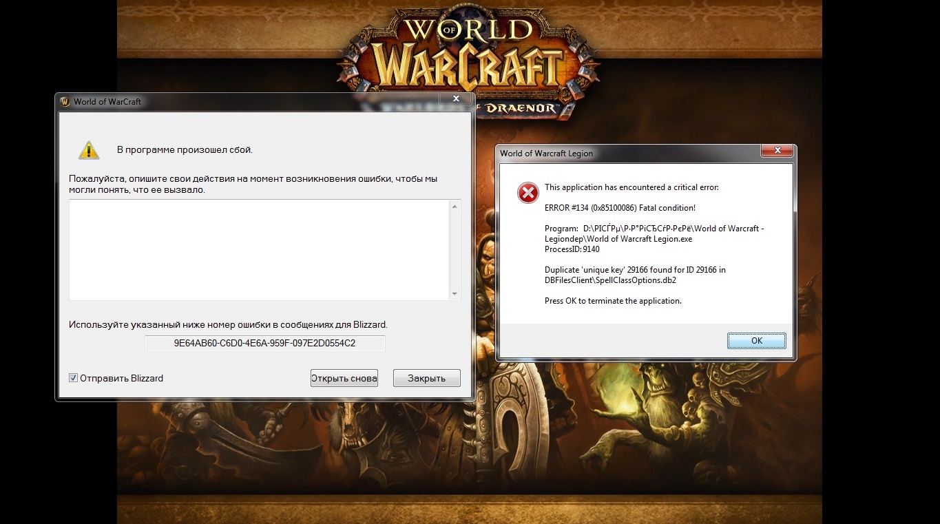 зашел дренор сделал пару квестов сделала релог и теперь нельзя зайти на перса постоянный вылет из игры