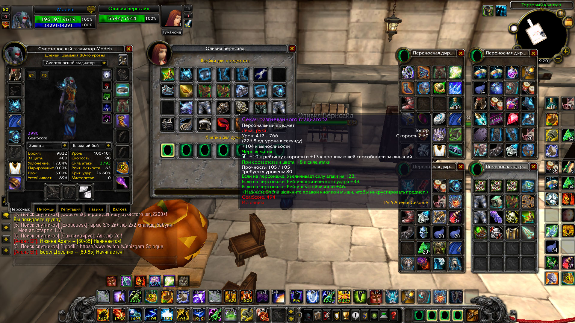 шаман бис пвп элем рестор и фул бис пве элем жнх 3/4 а8 нету перчаток и плечей но есть топ обвес боты плащь чешка все гер рс транс все на скринах