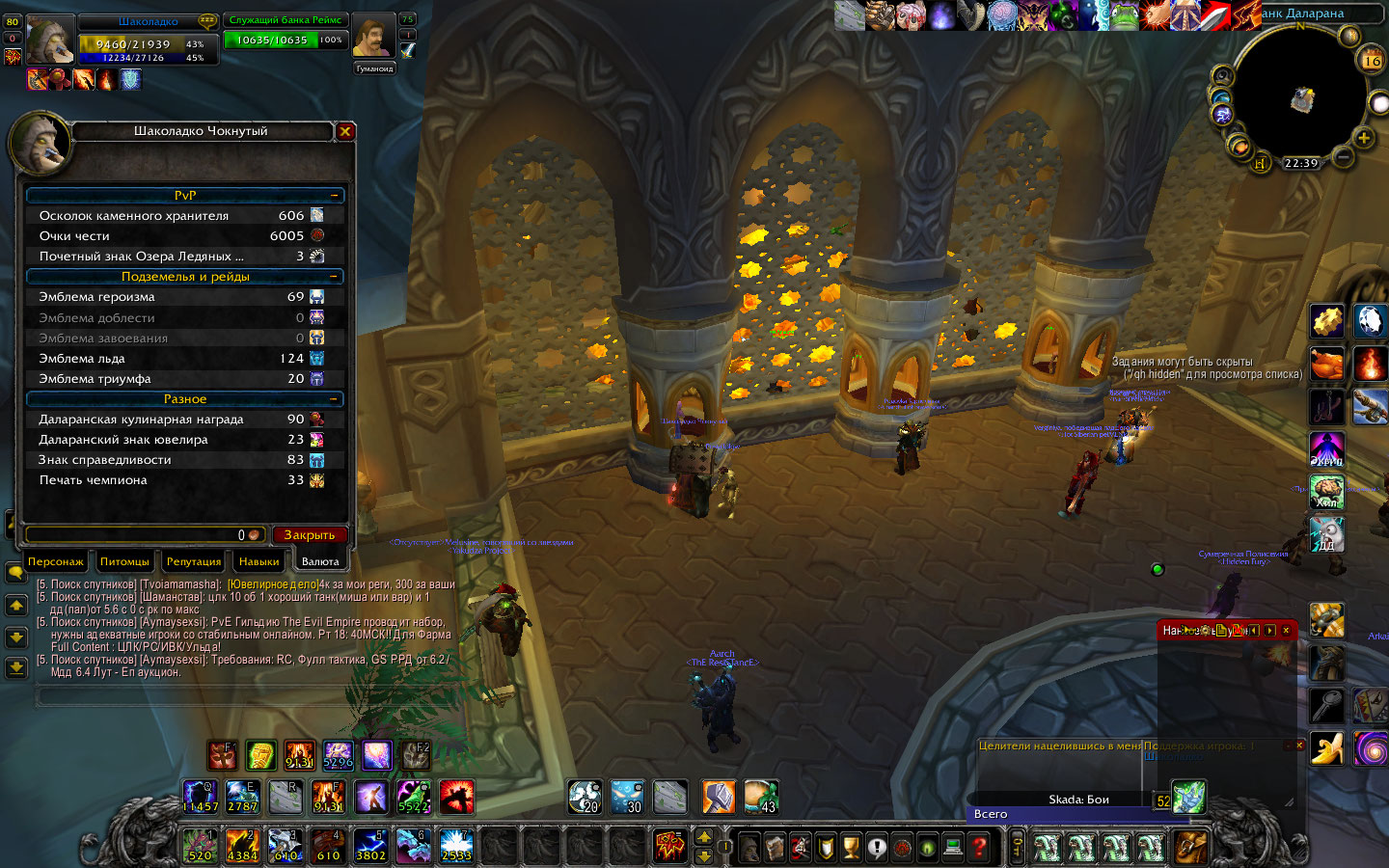 1.Шаколадко, Орда, шаман, троль, ршам гс 6к.. энх 5.8.... Ювелирка, инжа, рыбная ловля, кулинарка все на фул....Могу показать в игре