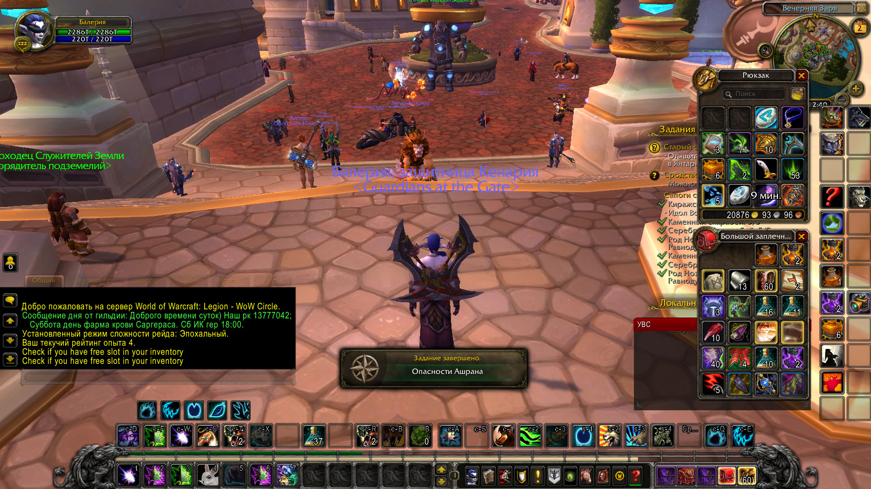 "Check if you have free slot in your inventory", при том, что половина сумок свободны.