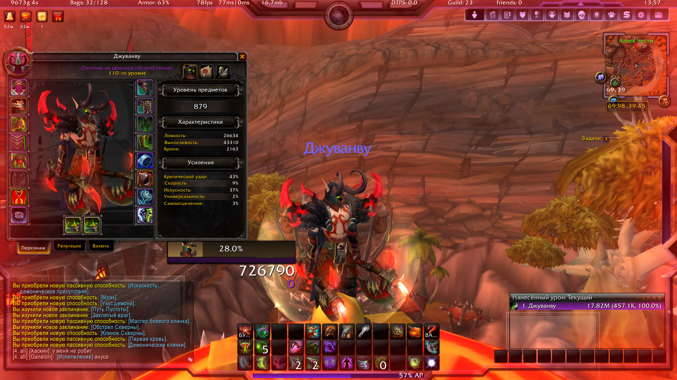 Итого без банок и пр: HP 4 118 413, Ловкость 24 399, Стамина 66 641, Броня 6 026, Крит 33%, Скорость 7%, Иск 23%, Универс 8%, Уклонение 27%, Парирование 23%.