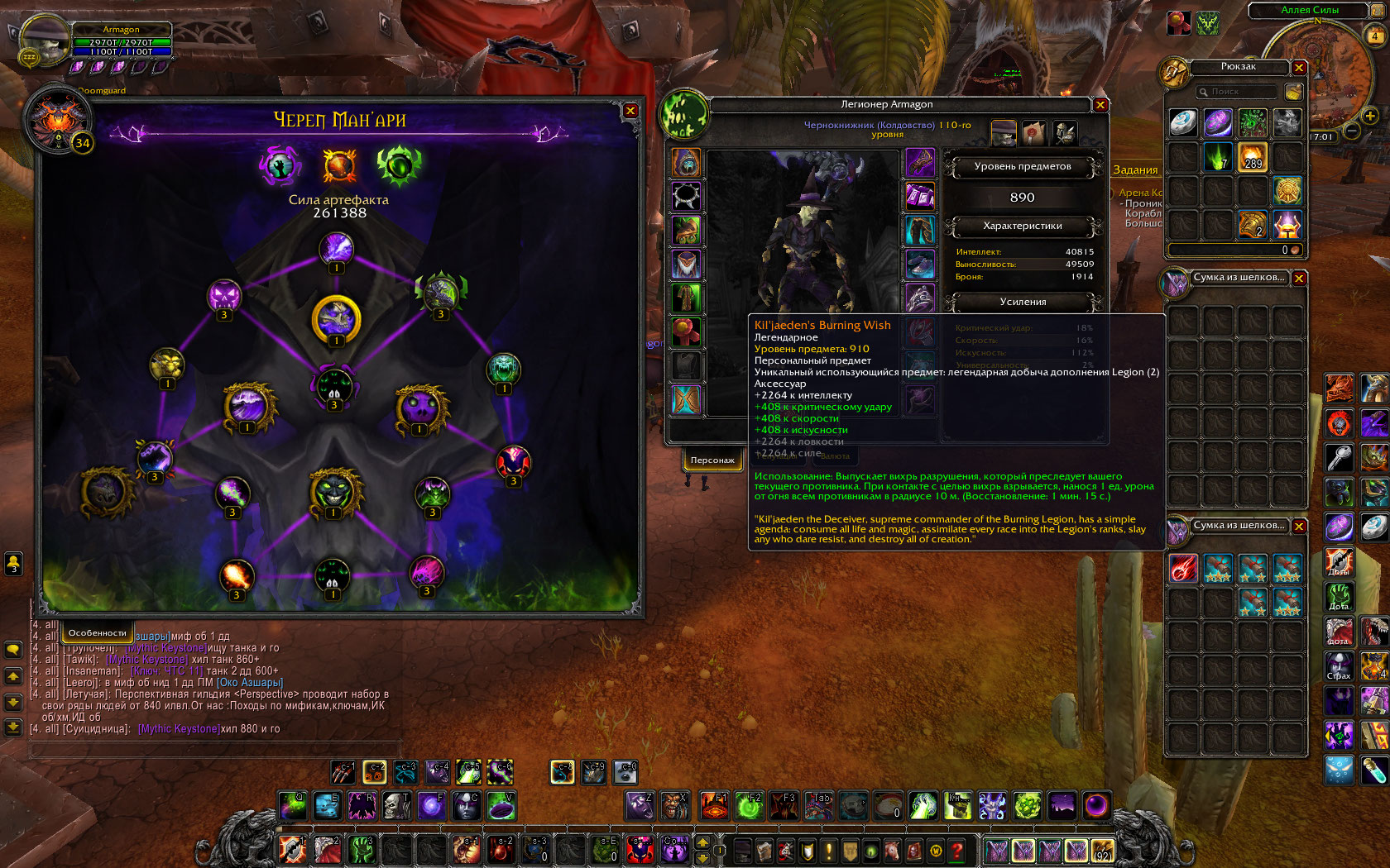 3 алок 890 илвл 44лвл арта 903, демон 902, 3 леги:голова, пояс, и триня килжиден.