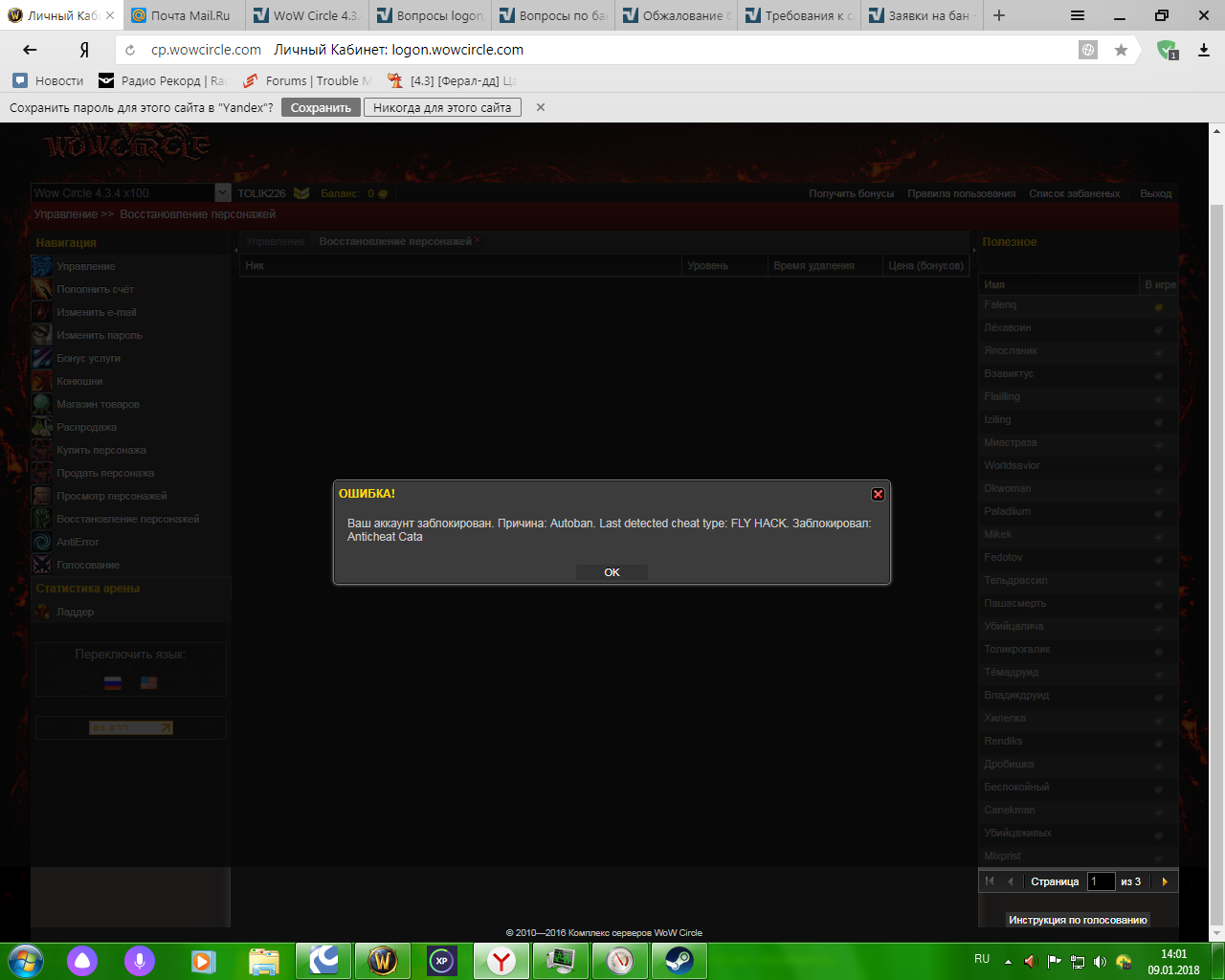 Дальше серв завис - провис минуты 2 ( у меня) и вылетело. захожу и пишет "Ваш аккаунт заблокирован"