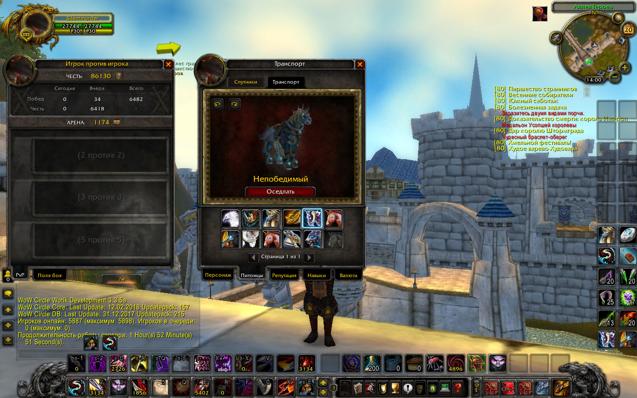 5.На разбойнике есть все для отличной игры. Шмот: а8 фул. Трини: приговор, чешка и воля(гер). Кинжалы: крис вечной лжи(x2), Сердцекол,Кованая плетью секира(все гер),Пробиватель легких. В сумках и банке уйма шмота. Много на трансмогрификацию! В том числе Азинотки(х2). Маунты: Непобедимый,Владыка воронов. В умелых руках этот разбойник станет кошмаром для любого противника!Выставил в лк.Если надо могу показать в игре.