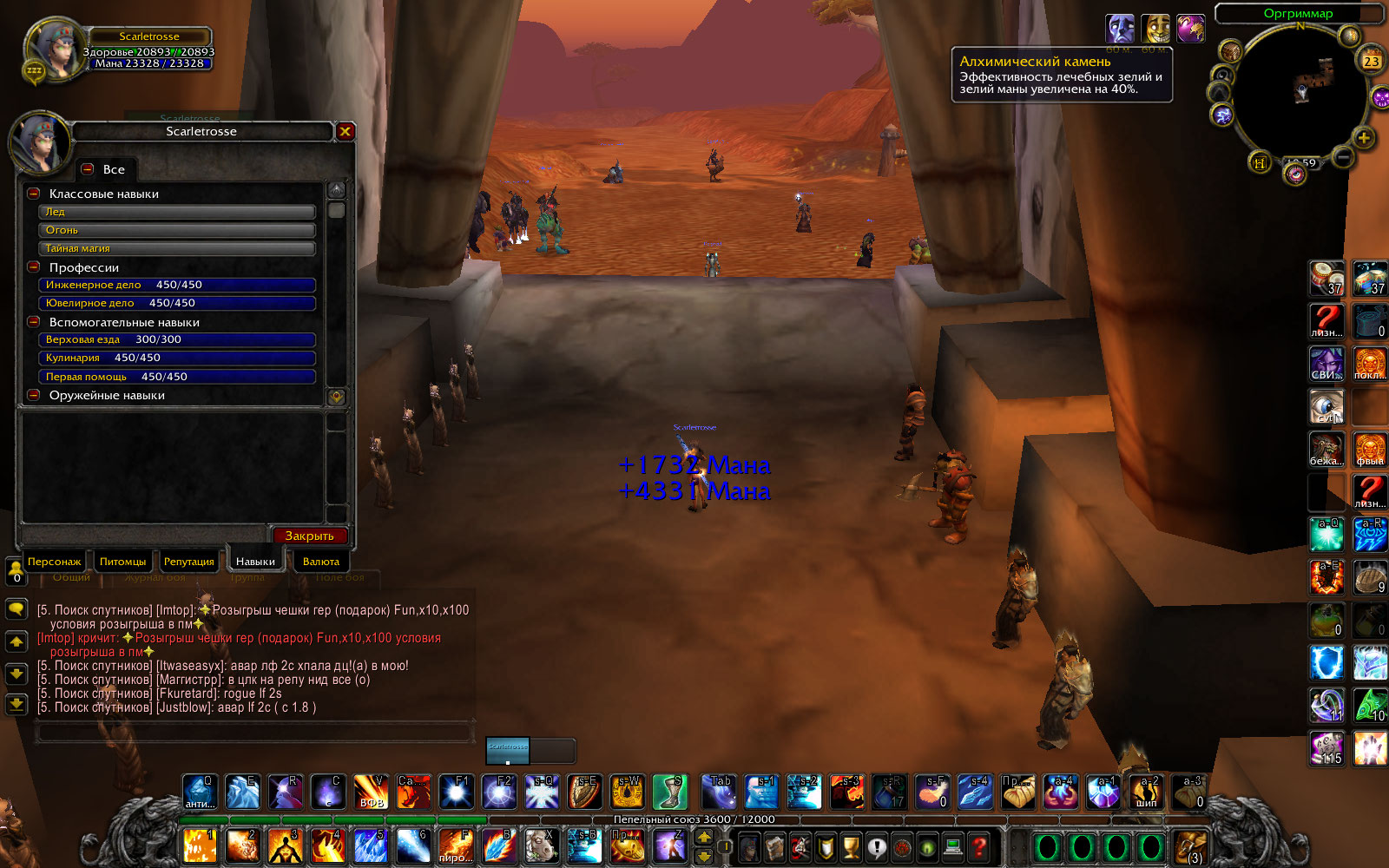 3. баф длолжен пропадать после того как снимаешь тринькет ). вот выпил зелье там 2 раза получена мана . + 1732 это те 40% . в профессиях алхимии нету