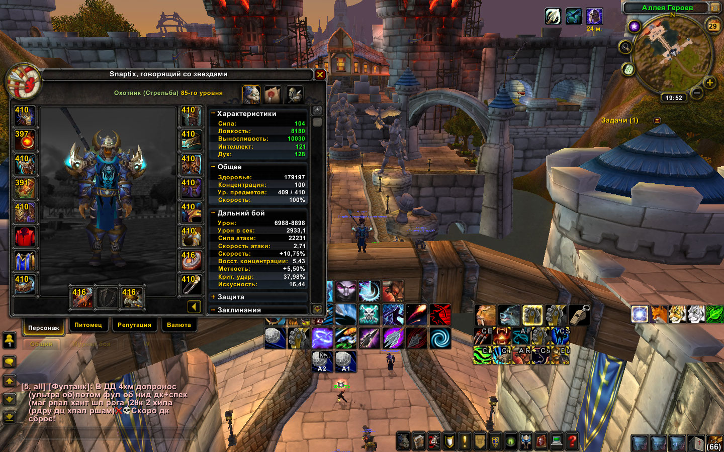 2. На персонаже наиграно 58 дней, почти 10к ачив, 13 страниц маунтов(в том числе донат и ордынские маунты, Волшебный петух, Скакун Тираэля, Ржавый прото, Чумной прото, Дракон ониксии, Красная ракета, Зеленый огнеястреб, Скорпион(ордынский), Ледяной змей смертоносного гладиатора, Непобедимый, Пепел Алара, Алисразор, Призрачный скакун, Сумеречный дракон яростного гладиатора, Гоблинские трицклы), куча транса, 40+ званий, куча фановых итемов, вообщем заряженный хант.