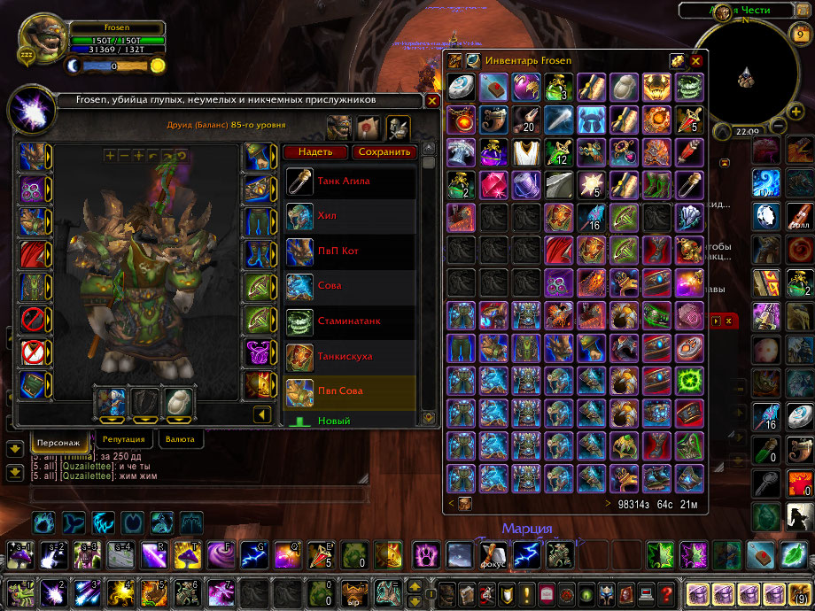 3)Ну шо сказать.Перс Конфетка. Имеется 4 Сета на Танка(Агила+плащ/Гибрид ловка+стамина/Ловка+искуха/Фул Стамина+плаш), Сет на Кота (пвп/пве+плащ), Сет на Сову (пве+лега/пвп), по трансу, 2 сета с ОП(об/хм), Сет с Ярморки Новолуния, Громовая ярость, чарка в гоблина, куча донатных маунтов, плюшек. Остальные скрины ниже.Так же не полный сет(пару шмоток осталось) на Ачиву+звание "Посланник Титанов" нишо такое звание Да?.