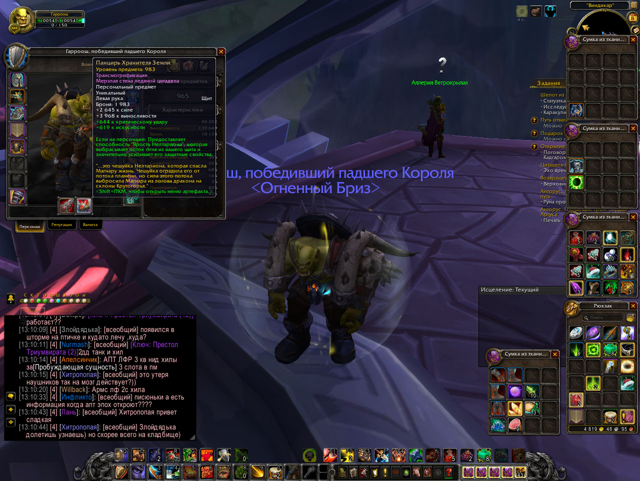 5)На персонаже имеются Нестабильный чародейский кристал 970,Видения Амантула,Придаз,Душа военачальника,3 дополнительных легендарных вещи на танка ,такие как :Перерожденная ненависть Архимонда,Повелитель судьбы,Нестареющий прием.Так же я сделал ник перед продажей подходящий под трансмогрификацию персонажа)Так сказать небольшой бонус:)В рейде танк себя чувствует очень уверенно в грамотных руках,и справляется с большей частью боссов в АПТ в соло.