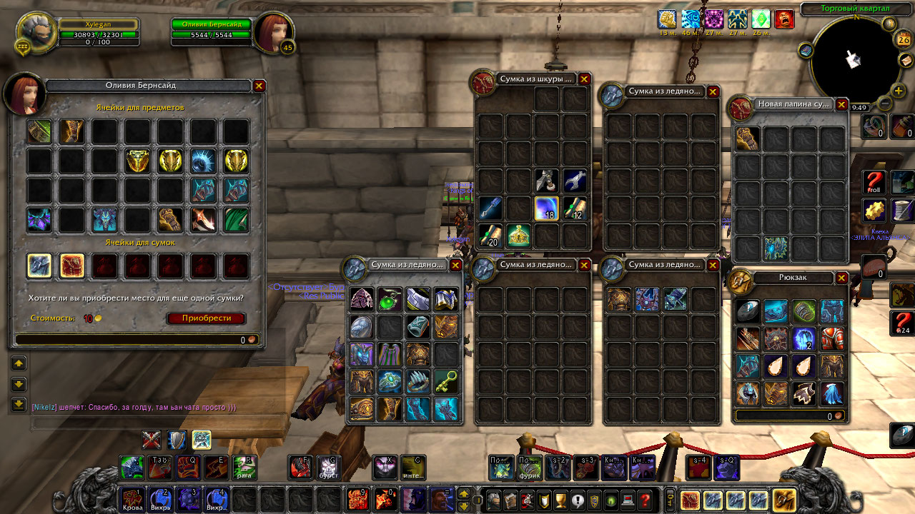 Скрины персонажа (не менее трех!!!), на которых видно ваши вещи, открытые сумки, достижения и т.д.,