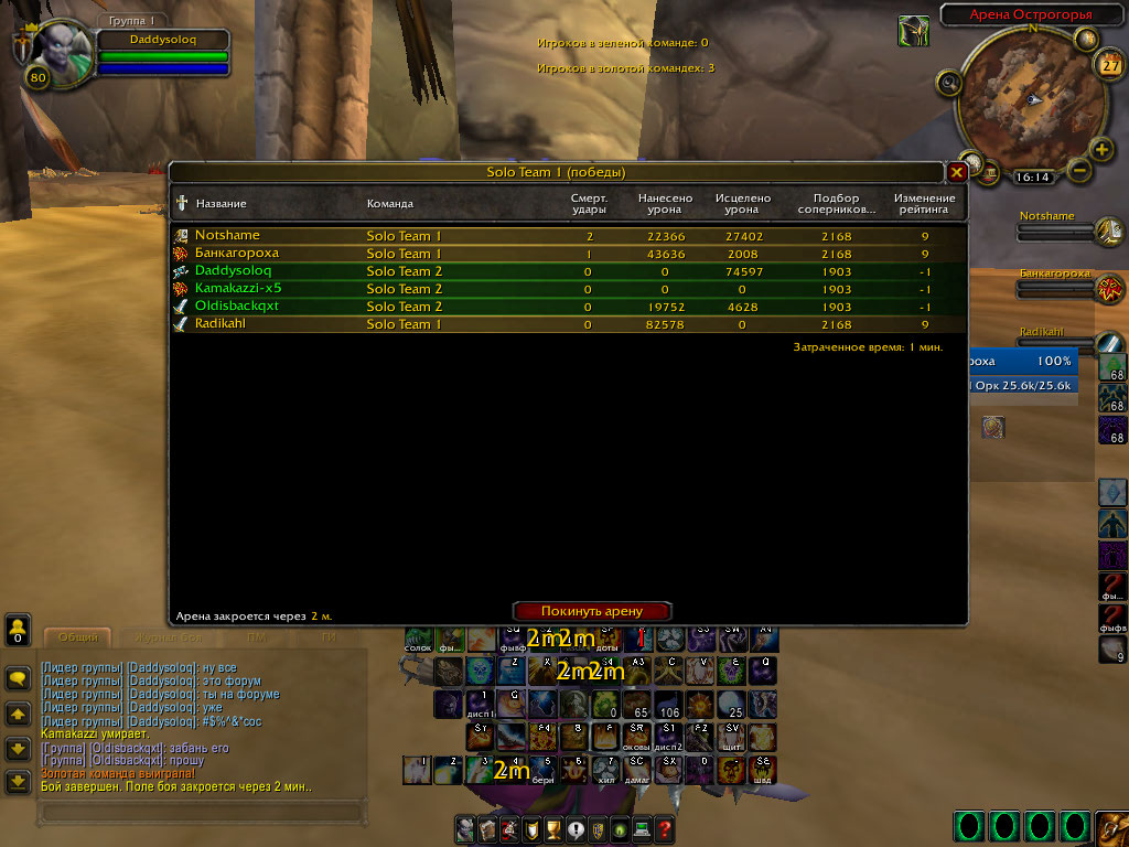 Данный игрок в пределах часа на 2к ммре солоки терроризировал всю арену, тупо бегал афк, по кд отдавал рандомно спелы, каждый бой он первым спелом просто так отдавал тандер, каждый бой от него 0 ассиста хила и самый минимальный дамаг от дд, а вконце на закуску он начал тупо заходить и бегать на маунте, просьба проверить данного персонажа и принять меры, у человека солока 2к достижение, 3с 2.2 и 2с 2.3 то что тут наглядно человек специально руинит людям игры, а не от того что он якобы учится видно сразу.WoWScrnShot_042819_151529.jpg