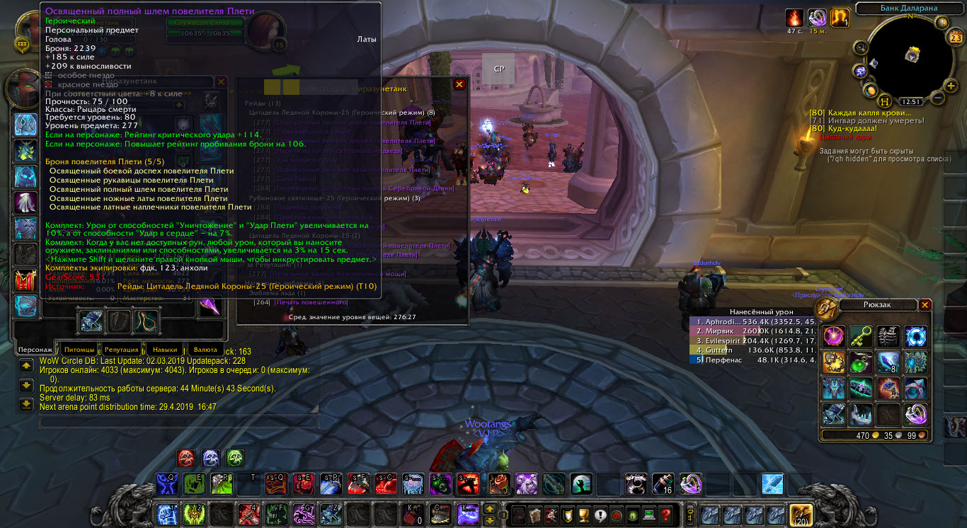 23 дня онлайн , 2к+ ачив, Отличный танк пве , 6.2 анхоли бис шмот не хватает до биса освятить т10 выбить руки с гниломорда и волю или другую триню и сделать шм даже без этого будет в топ по дпс и тпс.