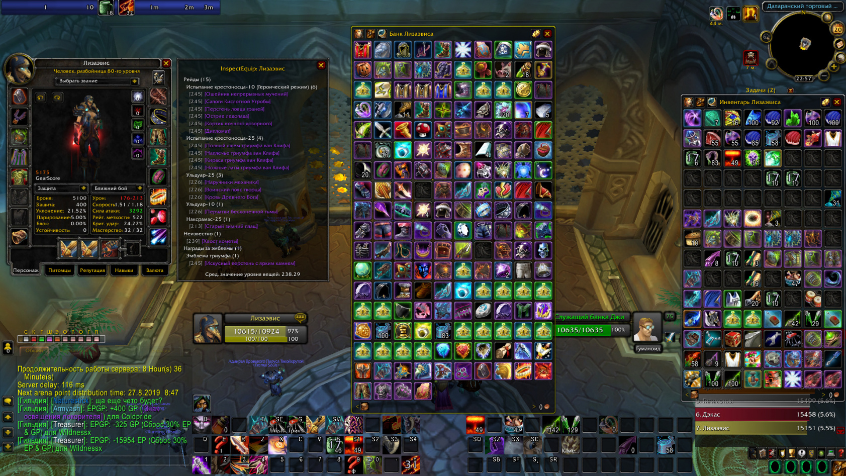 3.всё видно на скринах и так же можно осмотреть всё в новой личном кабинете) осматривать в игре теперь не нужно, просто в лк есть вкладки сумки+банк и так далее. Там видно фул пве и пвп со всеми приколами) куча разных донатных приколюх