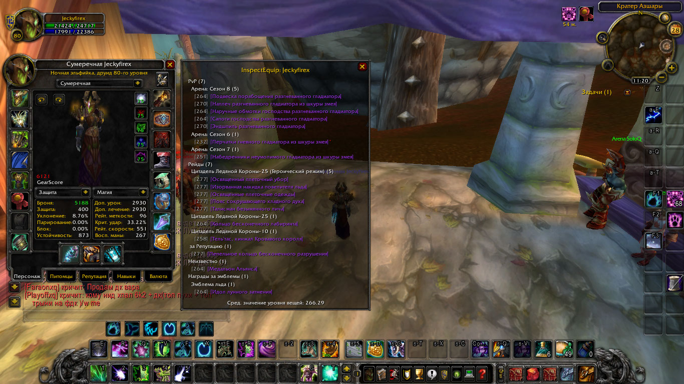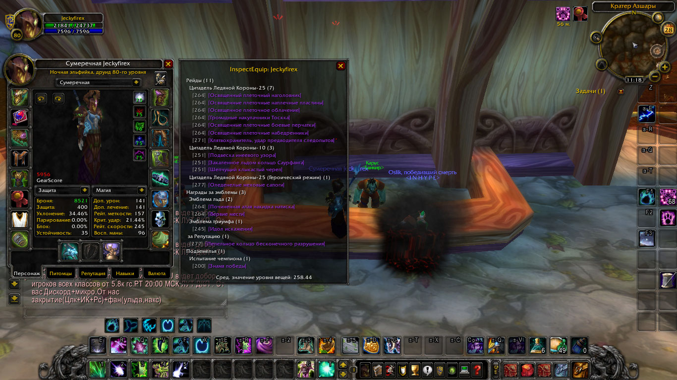 1.Jeckyfirex,альянс,экипировку видно на скриншотах,так же можете через лк посмотреть