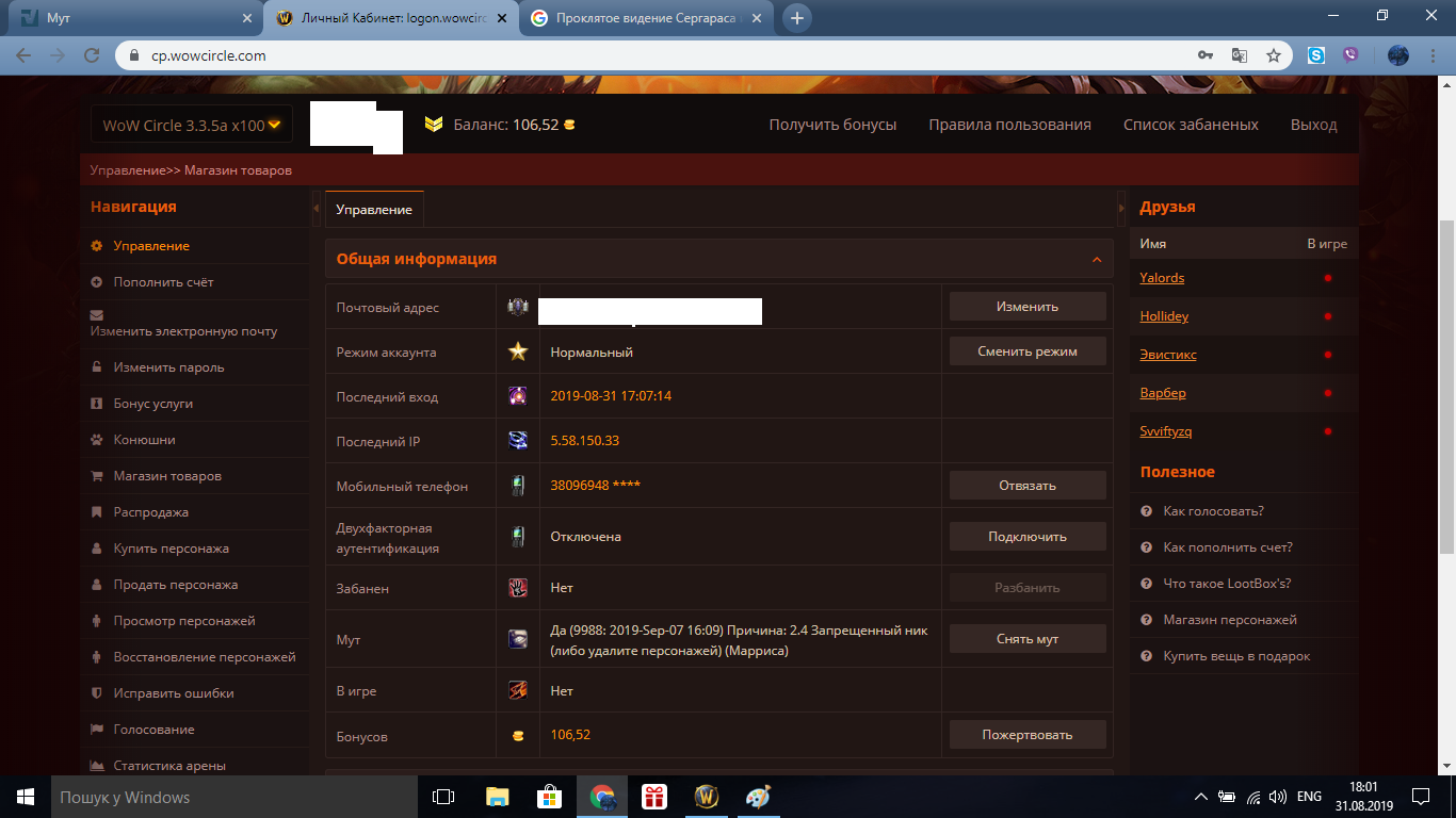 С личного кабинета скрин скиньте, только логин и почту зарисуйте.