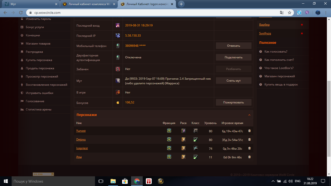 Модер не виноват, чар по прежнему в игре идентифицируется.