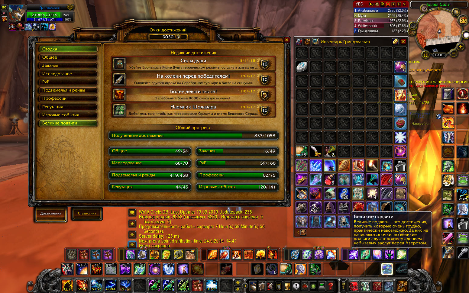 Не плохой таки шаман, 6.3 элем 6.4 ршам, пвп есть хил 5\5 а7. Есть топ маунты. 94 дня онлайн!