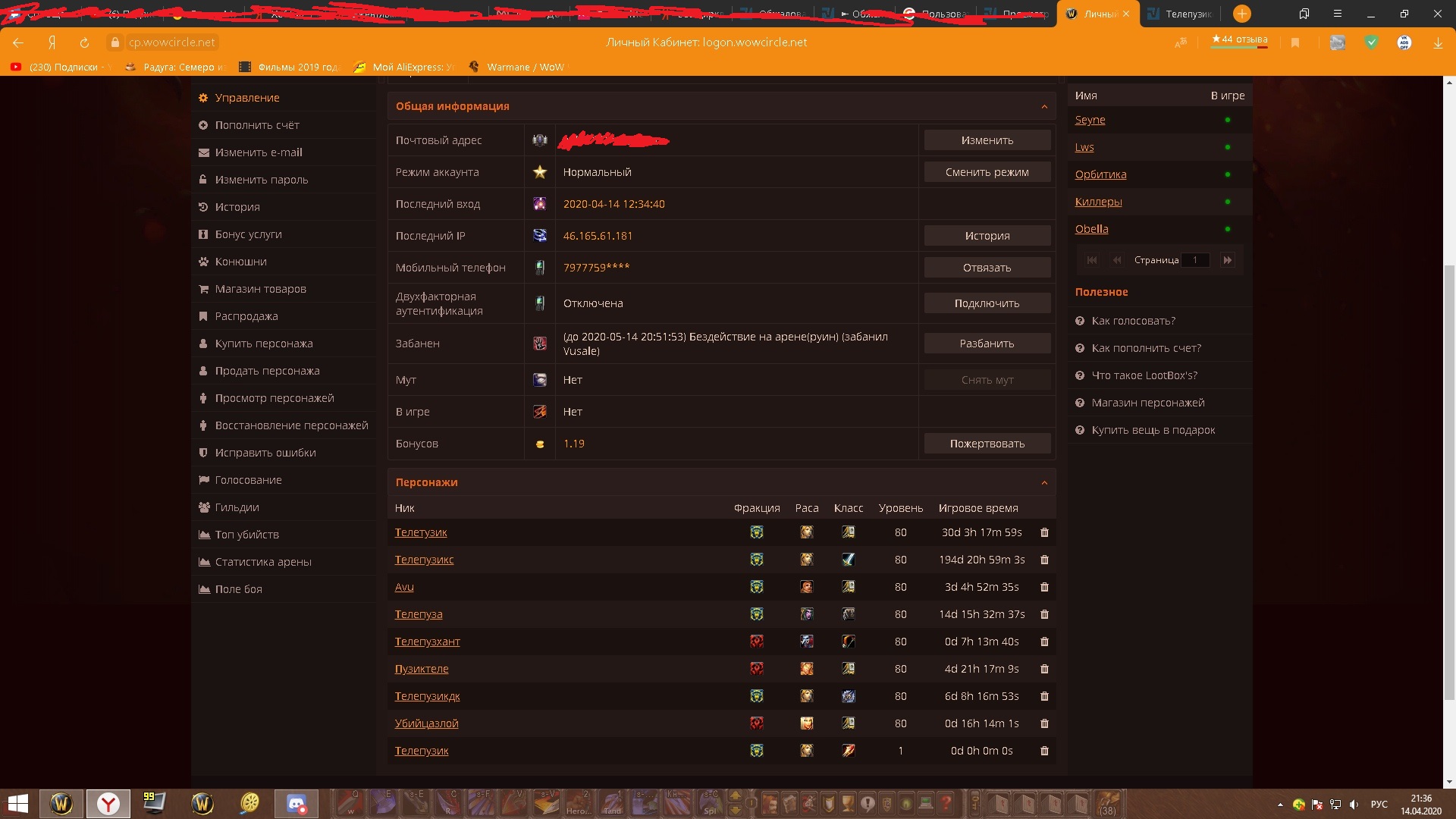 P.s- И еще вопросс вам как уважаемому человеку на вовциркл,как может человек бездействовать и надамажить в 2-3 раза больше своим напарников в солоке? Сомнительно что то немного...Вусал,если вы за справедливость,прошу разбанить,ибо на видео отчетливо все видно,напротив это шп который со мной играл у него было бездействие.Он надамажил в 2 раза меньше меня,и он на свободе..А меня забанили.Без своих самых ключевых спелов к сожалению я надамажил в 2 раза больше шп. я вижу только бан за проигрыш либо за нажатие случайно двух кнопок до арены,но никак не за бездействие
