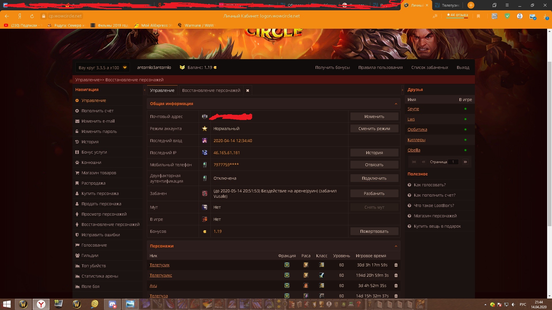 2. до 2020-05-14 20:51:53) Бездействие на арене(руин) (забанил Vusale)