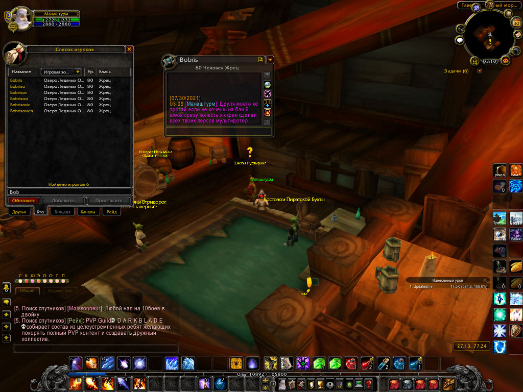 Прошу забанить человека с х5 , пользуется мультидотингом , абсолютно не даёт играть и выполнять квесты на ОЛОWoWScrnShot_073021_030753.jpg WoWScrnShot_073021_031003.jpg здесь его все персонажи